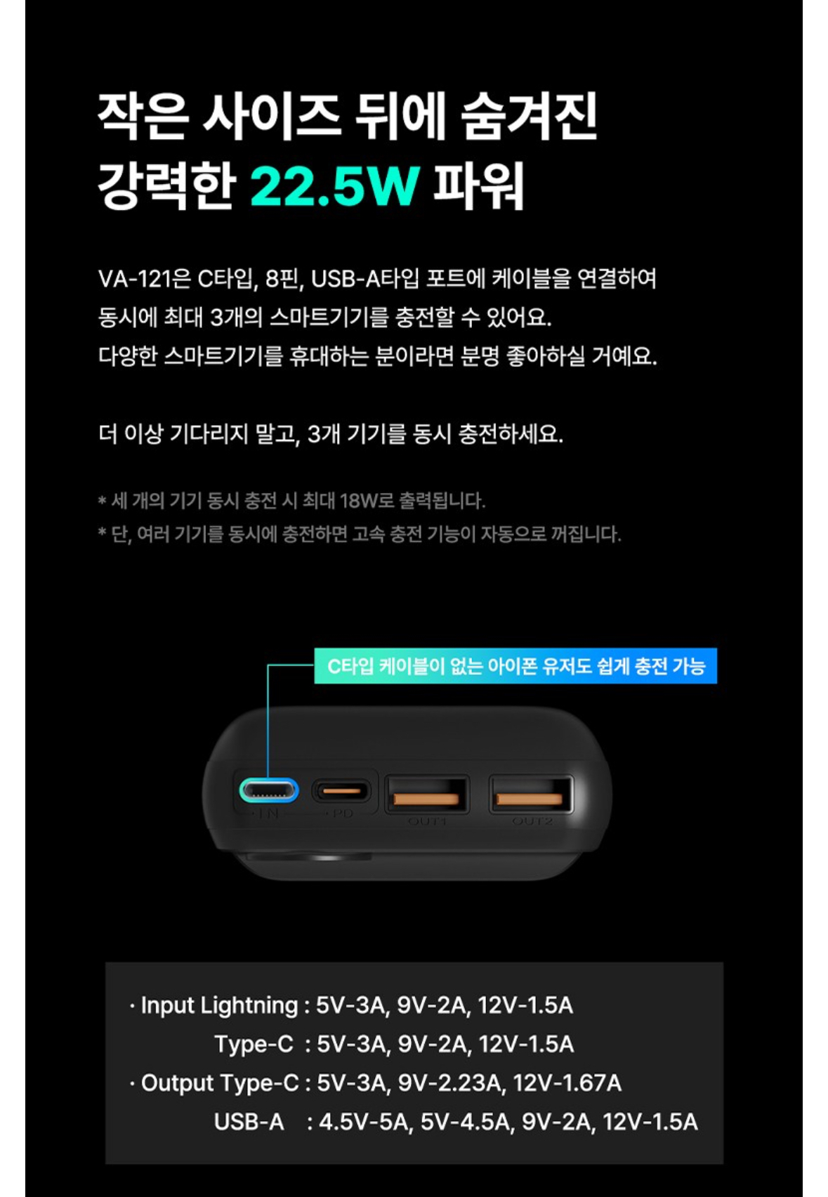 • 출력: 22.5W 고속 충전 지원