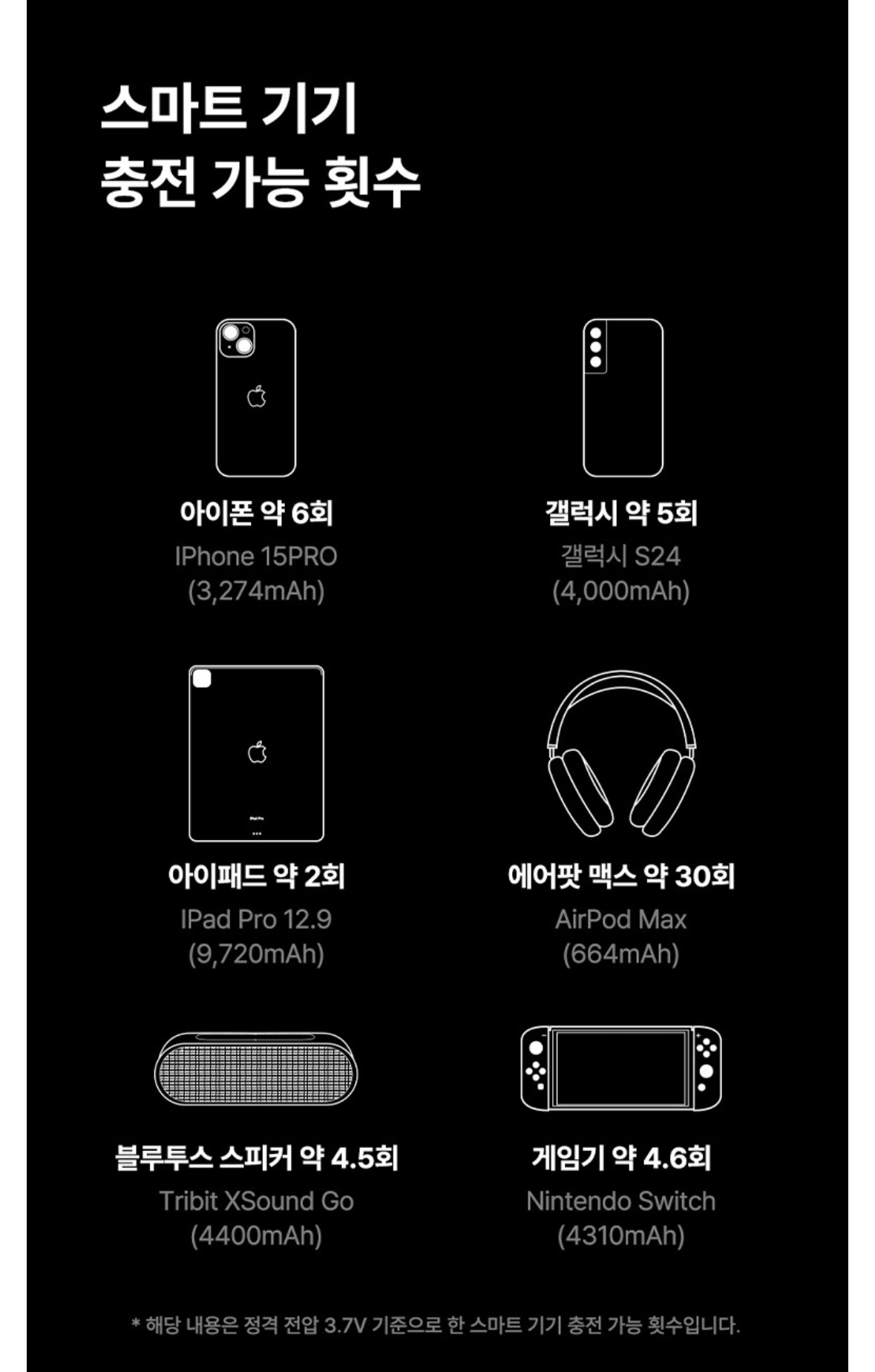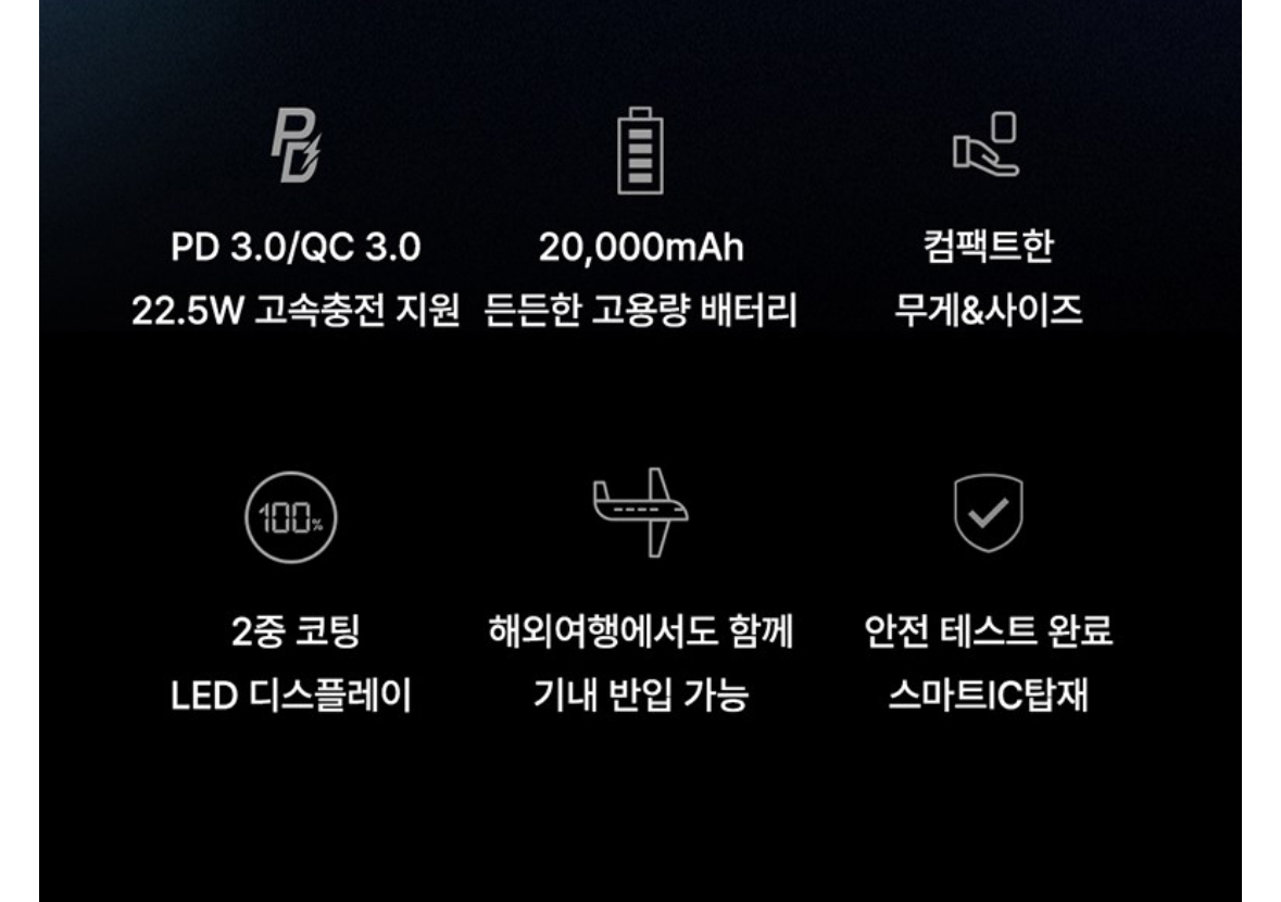 • 기내 충전 금지: 기내에서 보조배터리를 이용한 충전은 금지되어 있습니다.